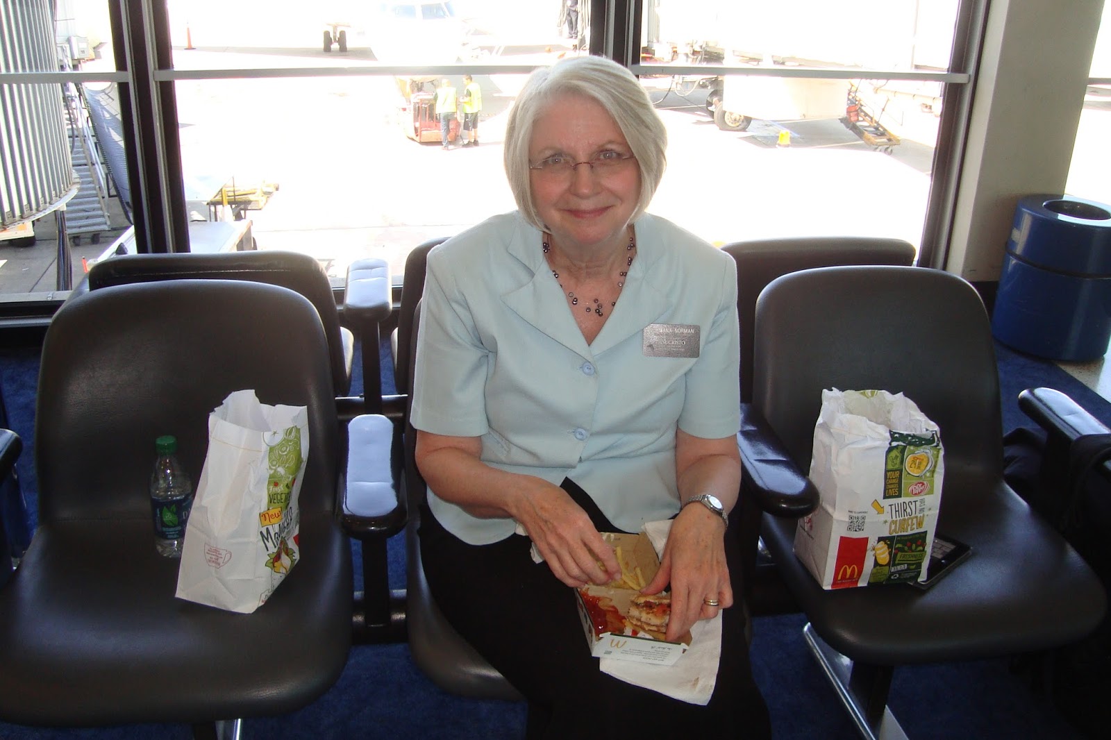 It was nice to be with them one last time and especially nice to eat such good food since we had cleaned out our refrigerated the day before. That left us with about an hour and a half to finish packing before we needed to leave for the airport. Mom underestimated how long she needed to get ready and if it hadn’t been for Diana Crayk who came down and cleaned our kitchen we would never have made it. So at 4:00pm we headed for the airport.