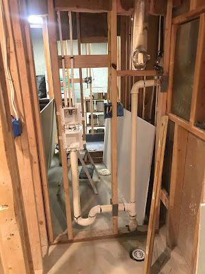 plumber came in the afternoon and rough plumbed the basement. He did not have everything he needed to run